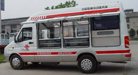 该车实行三面开式服务,可以现场费用缴存、入网开户、终端设备展示和销售,具备业务