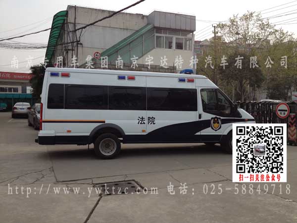 该车选用了新款江铃全顺新时代中顶长轴作为底盘进行改装,全程进行一对一的法警看护,国内